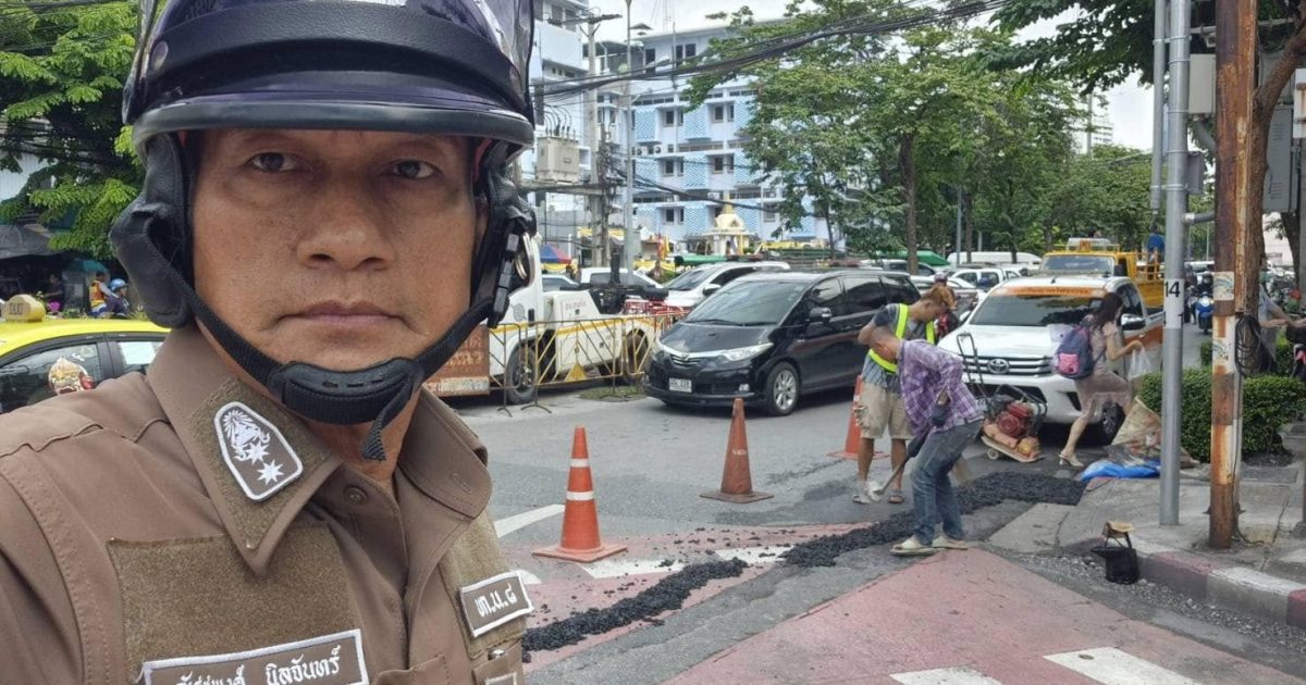 เจ้าหน้าที่ ว.4 การซ่อมแซมปรับปรุงถนน 22 ตุลาคม 2567 โดย somdetchaophraya / 06 การประชาสัมพันธ์ข้อมูลข่าวสาร การซ่อมแซมถนน(คลิ๊ก) พ.ต.ท.ณัฐชพงศ์ นิลจันทร์ สว.จร.สน.สมเด็จเจ้าพระยา และเจ้าหน้าที่ตำรวจจราจร อำนวยความสะดวกการจราจร ให้กับเจ้าหน้าที่ สจส. ในการปรับปรุงซ่อมแซมถนน บริเวณแยกคลองสานเพื่อป้องกันและลดอุบัติเหตุทางถนน Facebook iconFacebookTwitter iconTwitterLINE iconLine