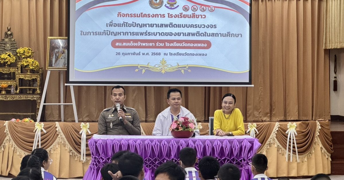 โครงการโรงเรียนสีขาว 26 กุมภาพันธ์ 2568 โดย somdetchaophraya / 06 การประชาสัมพันธ์ข้อมูลข่าวสาร,ไม่มีหมวดหมู่ โครงการโรงเรียนสีขาว ตามนโยบายรัฐบาลในการป้องกันและแก้ไขปัญหายาเสพติด แบบครบวงจร ตามยุทธศาสตร์ชาติ วันพุธที่ 26 ก.พ. 68 เวลา 08.30 น. เจ้าหน้าที่ตำรวจสถานีตำรวจเจ้าพระยาร่วมดำเนินกิจกรรมโครงการโรงเรียนสีขาวเข้าให้ความรู้เรื่องโทษของยาเสพติด บุหรี่ไฟฟ้า และกฎหมายจราจรเบื้องต้นในการใช้รถใช้ถนน ณ โรงเรียนวัดทองเพลง แขวงคลองต้นไทร เขตคลองสาน กรุงเทพฯ Facebook iconFacebookTwitter iconTwitterLINE iconLine
